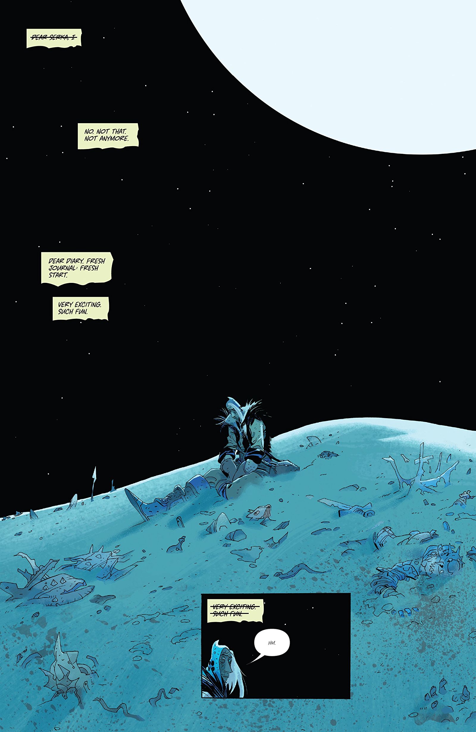 Otro elemento adicional que me ha gustado es el uso del diario de Hum, en el que Spurrier muestra de forma muy chula la diferencia entre la imagen que buscamos transmitir a los demás o incluso la forma en que a veces nos engañamos a nosotros mismos, frente al yo egoista que sigue agazapado en nuestro interior. Comprender esta realidad es el primer paso para mejorar como personas y seres humanos. El bardo Hum y su papel en la historia sirve de reflexión sobre la importancia de las historias y las personas que las cuentan y transmiten de una generación a otra. Este tema también es recurrente en la obra de Spurrier como ya vimos en Six-Gun Gorilla, y consigue que el final tenga más capas de interés dentro de ser ante todo un comic de entretenimiento.