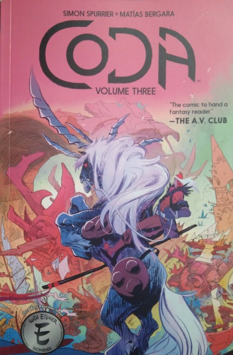 Coda ha sido una de las sorpresas de este 2019. No tanto por la super chula historia de Simon Spurrier, que ojo me ha gustado mucho, sino por el espectacular apartado artístico del dibujante uruguayo Matías Bergara. Durante el año reseñé los volúmenes uno y dos de esta serie, y ahora toca dar mis impresiones ahora que el comic ha finalizado.