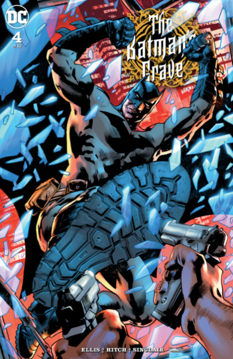 Frente al estilo widescreen que popularizó en Authority, Hitch nos pone a pie de calle junto a Batman acompañándole en su investigación, con unas páginas super detalladas siempre planteadas para contar la historia de la forma más limpia y clara posible. En este cuarto número vuelve a entintarse a si mismo, frente a los números uno y tres entintados por Kevin Nowlan, entregando unas páginas geniales.