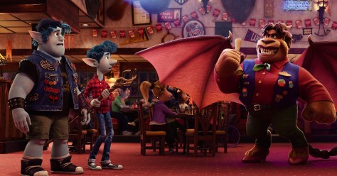 Otro elemento a destacar es la sobresaliente animación y la creación de esta “fantasía suburbana”. Ver la evolución de seres fantásticos como elfos, cíclopes, centauros o duendes de la imagen clásica que tenemos de ellos hasta su versión “civilizada” en este mundo industrializado provocó momentos super divertidos que yo disfruté mucho. Un personaje estupendo es Corey la Mantícora, un ser mitad león mitad dragón con cola de escorpión que en la fantasía clásica es una feroz guerrera y que en el mundo civilizado es la estresada dueña de un restaurante temático especializado en fiestas infantiles. Onward hace un divertido ejercicio subvirtiendo las expectativas que tenemos de estos seres, aunque para los que no los conocen en primer lugar se hace muy complicado que disfruten la broma, algo que sirve para confirmar mi sensación de que estamos ante una película más pensada en los padres que crecimos en los 80 y 90 más que en los niños.