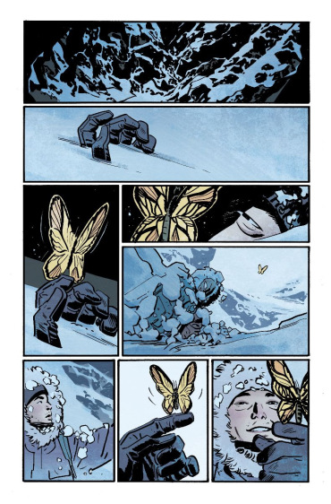 Kirkman se muestra muy a gusto homenajeando las películas de kung-fu de su niñez, siempre añadiendo un giro que aporta la dosis de molonidad y sorpresa a la historia. Este niño que viaja al Himalaya buscando su origen perdido suena familiar en todo, pero creo que Kirkman no necesita inventar la rueda en cada nuevo comic si éste funciona. Además, el formato de la novela gráfica le permite jugar con la narrativa y el ritmo de la historia, al no estar constreñido por el ineviable cliffhanger cada 20 páginas. El arranque del comic sin palabras que a continuación mostraré en e preview, o el largo climax final nos muestran a un Kirkman que hace lo que quiere, consiguiendo entregarnos un comic que suena a familiar pero con suficientes elementos que lo hagan fresco y original.