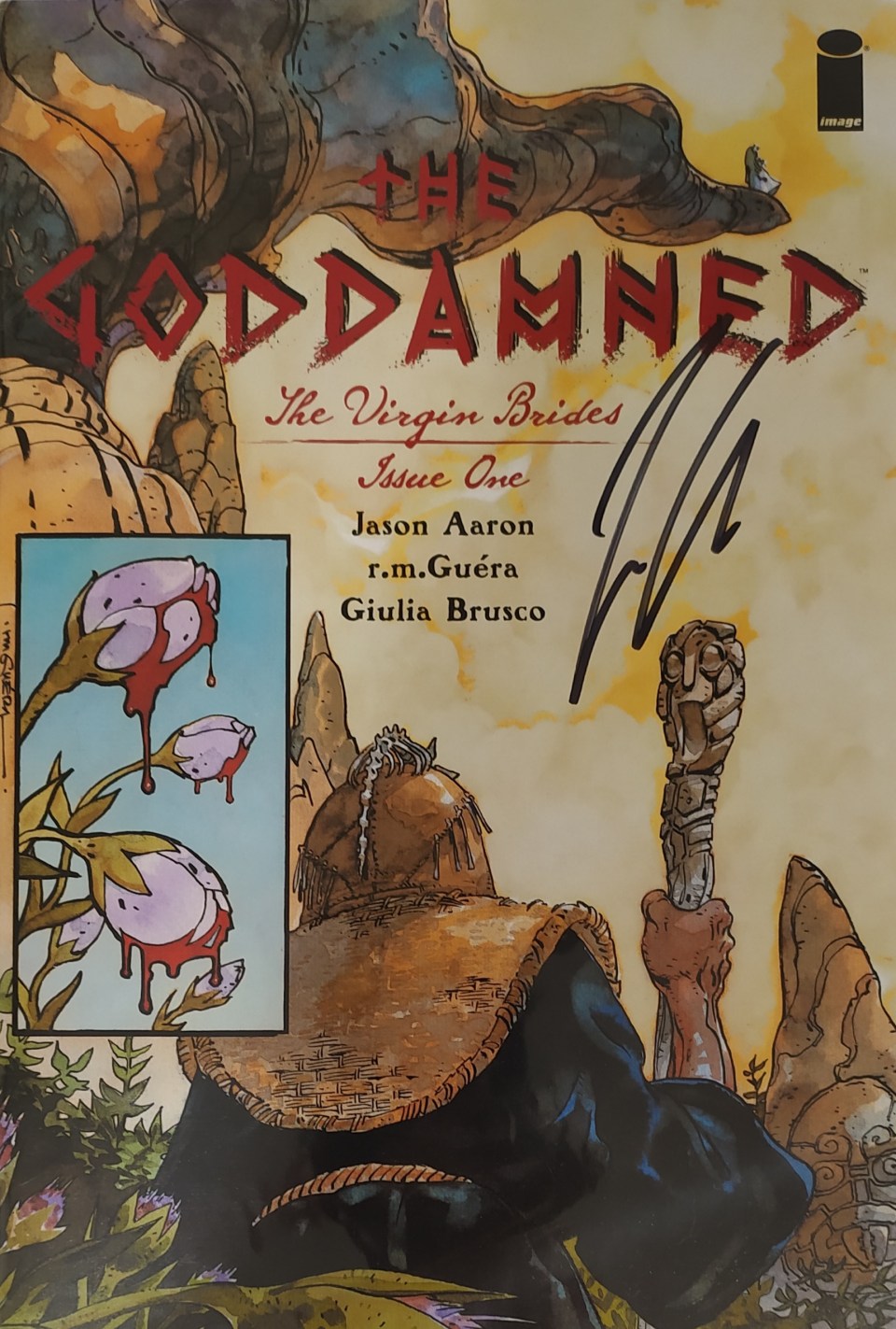 Jason Aaron y R.M. Guéra, junto a la colorista Giulia Brusco, nos han dado una gran alegría a los fan con el inicio de la nueva serie de The Goddamned, The virgin brides, cuyo primer ejemplar firmado por el propio Aaron me acaba de llegar.