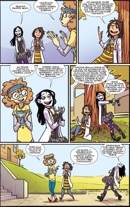En cierto sentido, este comic me recordó lo bonita que es la amistad en la época universitaria en los que nuestra personalidad termina de desarrollarse, y como a veces lo mejor de esa época no eran las grandes fiestas sino los pequeños momentos con los amigos. Este canto a la amistad está contada de una forma ligera pero transmite verdad, y he conectado desde la primera página con la historia a pesar del evidente tono juvenil sobre el que está todo planteado, probablemente por su sentido del humor inteligente y por la personalidad de las protagonistas.