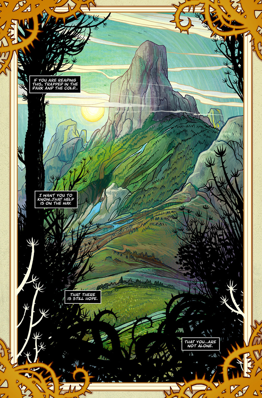 No sorprende que el color de Dean White sea sobresaliente, teniendo en cuenta que es uno de los mejores coloristas del medio. Lo que sí me llamó la atención de este primer número es lo colorido y vitalista que es todo, teniendo en cuenta que nos han vendido un comic con una sensibilidad oscura mitad fantasía mitad terror. En todo caso, dada la conocida habilidad de White, tengo claro que su color va a ayudar a contar la historia y amplificar las sensaciones que la historia vaya a transmitir durante los próximos meses.