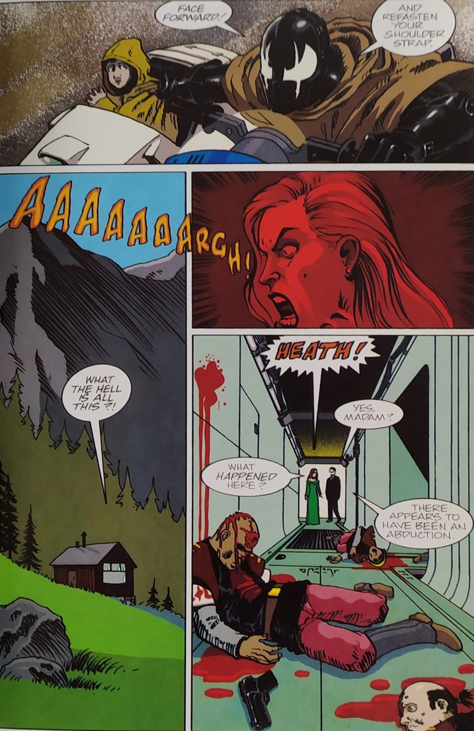 El apartado artístico me parece otro de los aciertos de este comic. Pat McEown, con entintado del propio Wagner y Monty Sheldon y colores de Bernie Mireault y Kathryn Dalaney, ofrecen unas páginas estupendas centradas en la fluidez narrativa, en la que siempre se entiende lo que está pasando y tiene unas buenas coreografías de acción. Además, no se “achantan” a la hora de mostrar seres aterradores y momentos sangrientos. El diseño del ahora clásico Grendel Prime es una chulada, enfatizando los elementos míticos del diseño inicial de Matt Wagner, transformando al elegante y grácil Hunter Rose en una fuerza de la naturaleza imparable.