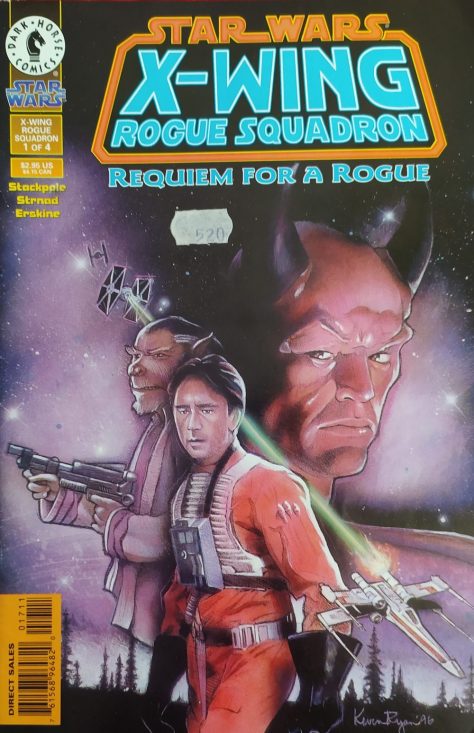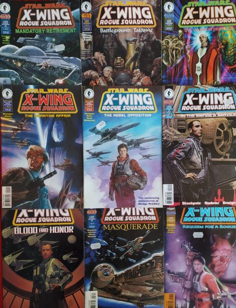 X-Wing Rogue Squadron fue una serie de 35 números publicada en Estados Unidos entre Julio de 1995 y Noviembre de 1998. Este dato resulta curioso, ya que Stackpole comenta que fue contratado para escribir el comic después de firmar para escribir las primeras 4 novelas da Rogue Squadron, que son otro clásico absoluto de la franquicia. Sin embargo, el comic, que fue ambientado justo después del Retorno del Jedi empezó a publicarse antes de las novelas. Stackpole comenta que tras realizar un extenso trabajo de back-story de todos los personajes de cara a empezar a escribir las novelas, aprovechó el encargo de los comics para poder contar el origen de los principales personajes, algo que no siempre tiene ocasión de hacer en las novelas, que se planteaban como historia de acción sin casi un segundo de respiro.