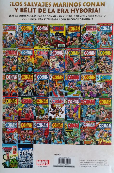 Este Ómnibus de más de 800 páginas recoge los Conan The Barbarian 52-83 y los Annuals 2 y 3 americanos, publicados entre julio de 1975 y febrero de 1978.