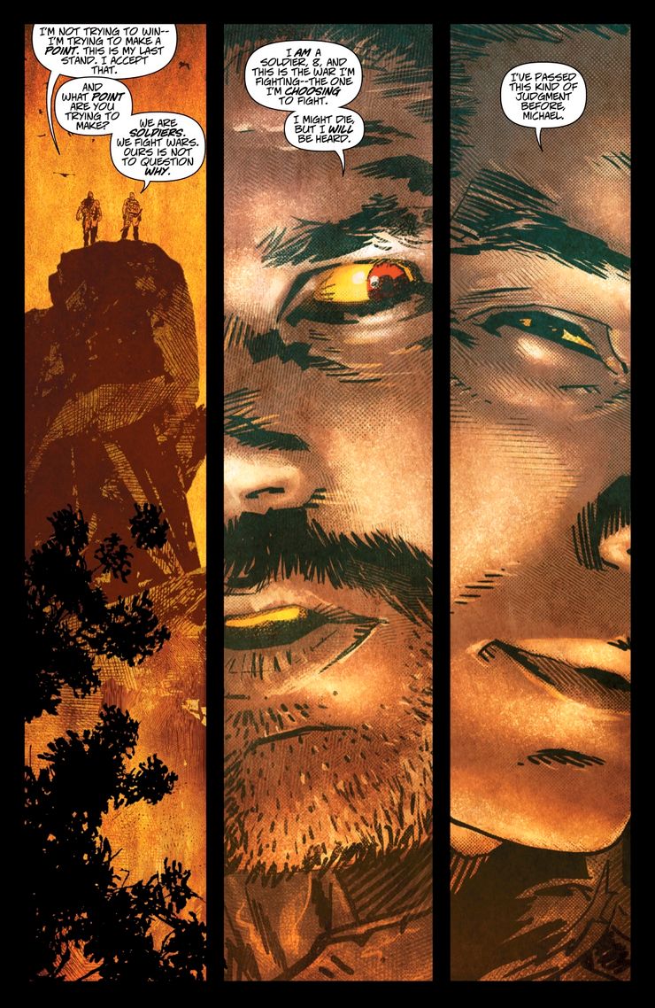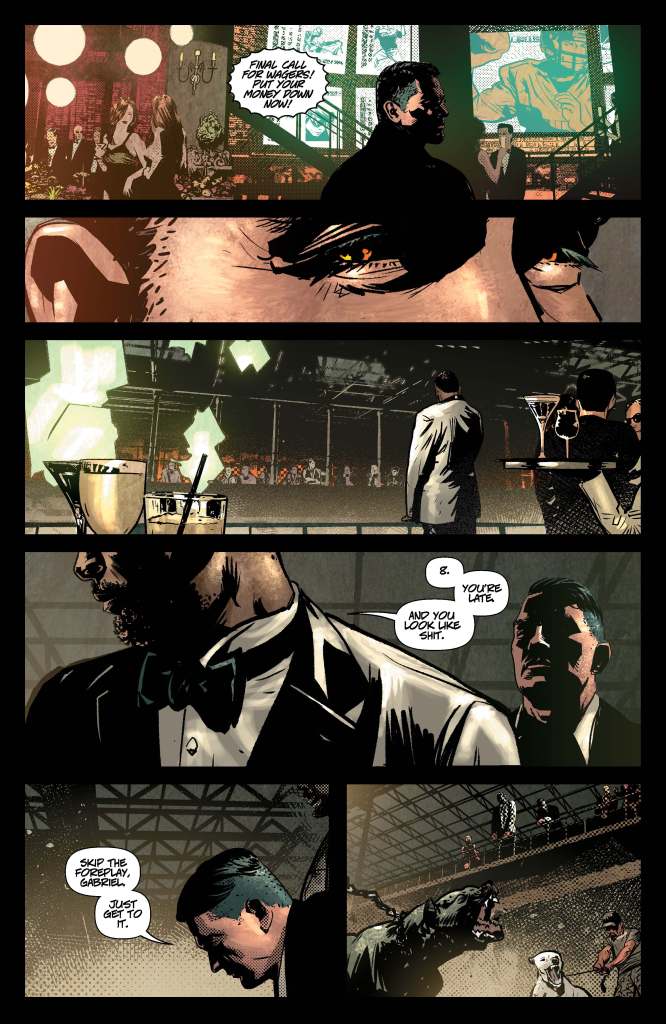 Empezando por los elementos positivos, la premisa del comic de crear un protagonista amoral en la mejor tradición del Punisher de Garth Ennis, un vigilante que sabe que lo que hace está mal y que mata criminales simplemente porque le gusta y es lo único que sabe hacer, es interesante. 8, o Raziel como se llama en realidad, es un hitman al servicio de Gabriel que hace lo que le manden sin cuestionarse nunca sus órdenes, pero tampoco creyendo que lo que están haciendo sea el “bien”.