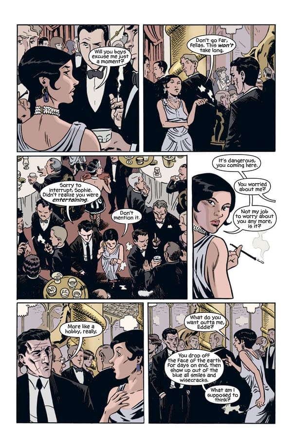 Este crossover de géneros es el principal elemento diferenciador del comic pero también puede significar su principal problema para que la historia enganche a los lectores. Porque hay que reconocer que leer un comic en los que unos Estados Unidos en la época de la depresión ven cómo los bajos fondos de las grandes ciudades están controlados por demonios es una idea muy loca que roza la suspensión de credulidad en muchos momentos. En virtud de si entras en el «rollo» de Bunn y Hurtt, no hay duda que disfrutarás del comic o no te lo creerás. Y en ese sentido, debo decir que estoy en el primer grupo.