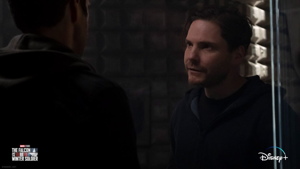 Luego hay un tema de tono es es muy complejo de explicar y más aún de cuadrar para conseguir que le experiencia televisiva sea perfecta, que creo que los creadores de esta serie no lo están acertando, mientras que en Wandavisión lo clavaron y es uno de los elementos que explican su éxito. La música de Henry Jackman, que está muy bien, intenta devolvernos a los principales hitos cinematográficos del MCU como Winter Soldier y Civil War. Sin embargo, cuando Bucky salta de un avión en marcha sin paracaídas en el episodio anterior para caer no en el mar como hizo Steve Rogers sino en un bosque, el tono entre ambas obras no encaja y, por tanto, la suspensión de credulidad empieza a hacerse pedazos. Eso es algo que me ha pasado también en este tercer episodio cuando Zemo tras estar años en la cárcel se intenta comportar como si fuera amigo de toda la vida de Bucky y Sam, lo que no cuadra nada con el Zemo frío y calculador que vimos en Civil War. Hasta asumiendo que todo forme parte de un plan para escapar más adelante, ese «super best friends forever» a mi no me cuadra con el Zemo de la película, incluso entendiendo que han pasado muchos años desde que Zemo entró en prisión. De forma que la música nos intenta devolver al «realismo» de las películas pero lo que nos están mostrando no cuadra con ese tono, por lo que el visionado termina con la sensación que todo es entretenido, pero no tanto como se esperaba inicialmente.