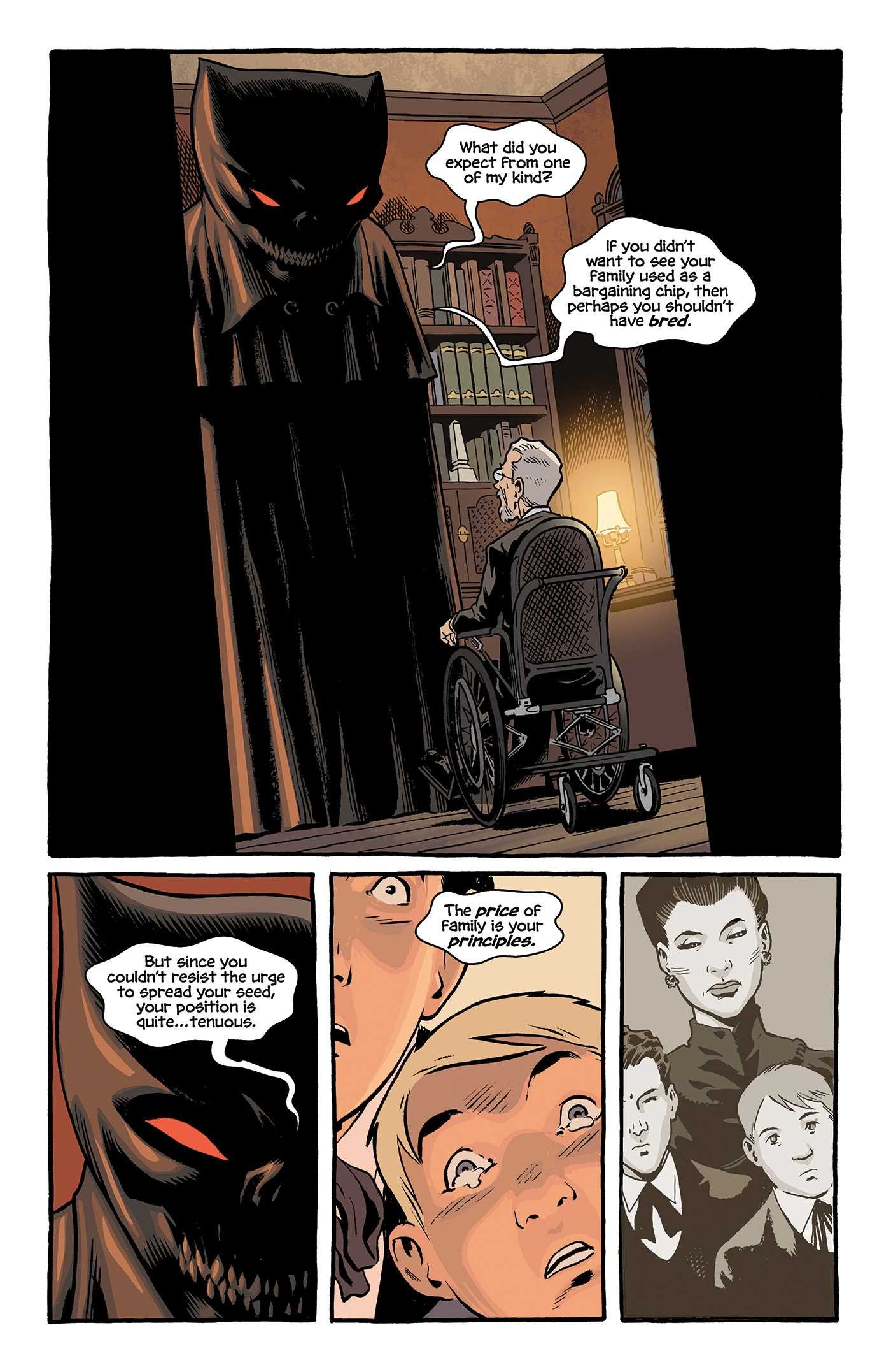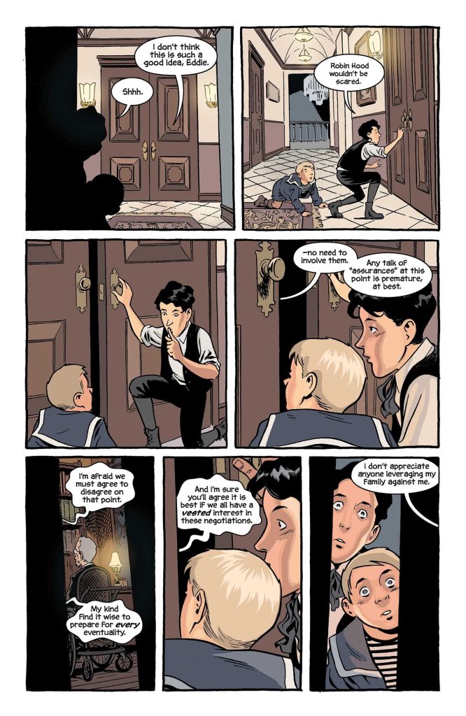 Brian Hurtt es un narrador perfecto que todo lo que pasa en la página se cuente de la forma más clara para el espectador. Consiguiendo una fluidez entre viñetas super chula. Junto a los colores de Bill Crabtree, me gusta también la forma en que nos muestran el otro lado, y como queda clara su diferencia respecto al mundo real. Como en los comics previos, su recreación histórica me paree chulísima, aún reconociendo que los demonios y monstruos varios que pueblan estas páginas no consiguen (ni lo pretenden) aterrorizar mientras leía este comic.