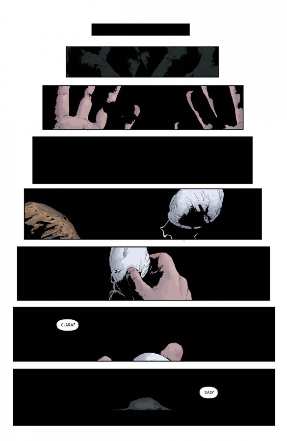 Y hablando de ejecución, que grande es ver a artistas en la cumbre de su creatividad. Andrea Sorrentino y Dave Stewart se han salido en este comic, creando algunas de las páginas más locas de los últimos años, creando una narrativa única jugando con la página impresa y creando un tipo de historia que sólo puede encontrarse en los comics y que justifica sólo por el arte la compra de estos comics. Sorrentino ha encontrado en Lemire el compañero perfecto que le permite explotar todas sus virtudes como artista y disimular sus carencias, a los que se une un Dave Stewart que demuestra en cada trabajo por qué es el mejor colorista del comic mainstream, ayudando a crear la atmósfera perfecta y consiguiendo que el color ayude a contar la historia igual que los dibujos.
