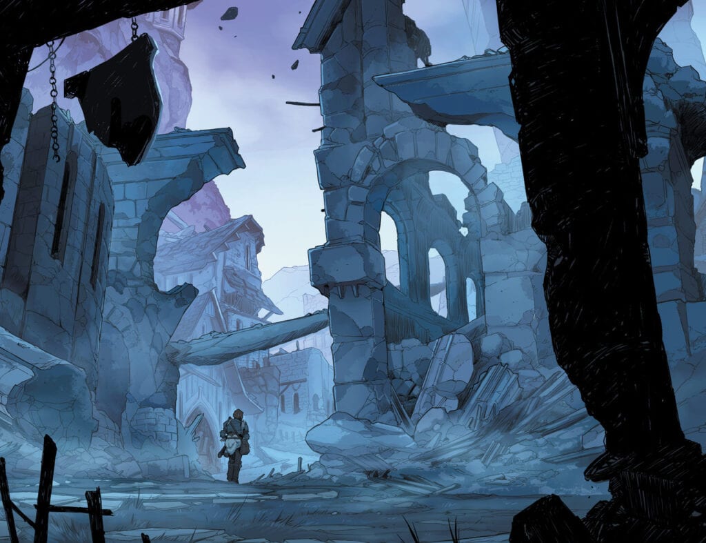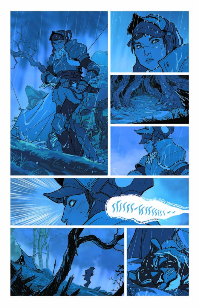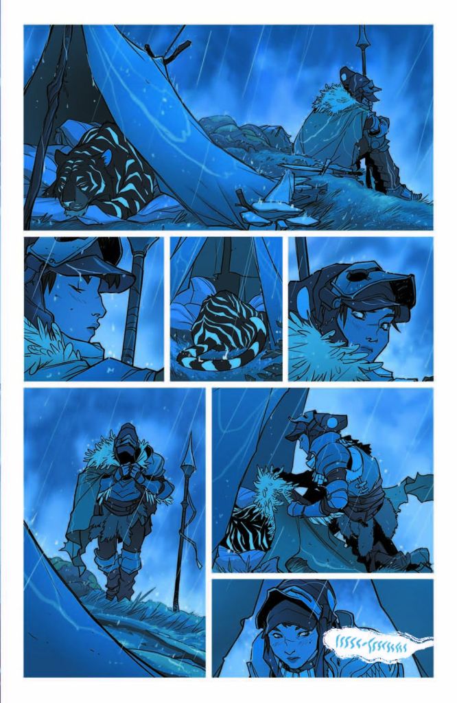Como comentaba, el dibujo de Kerschl me parece sencillamente espectacular. Un diseño de personajes chulísimo, una narrativa estupenda que acierta en las escenas de acción pero sobre todo en transmitir el dolor y el amor que sienten los personajes, y unas imágenes que parecen sacadas de un anime con unos fondos espectaculares que hacen que siempre veas donde está teniendo lugar la acción y donde se sitúan los personajes en cada momento dentro de ese espacio. La calidad del dibujo de Kerschl me ha volado la cabeza.