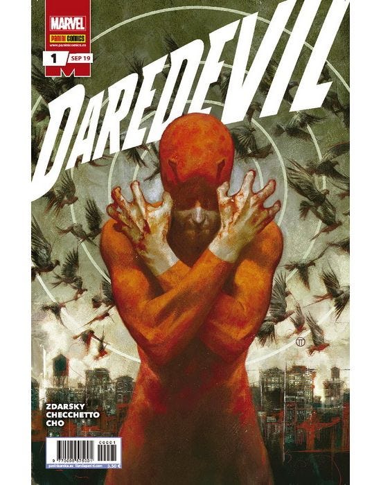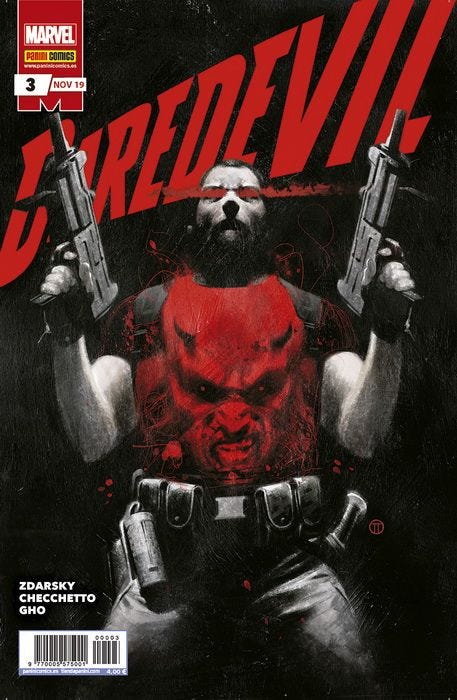Tras el éxito del post con mis impresiones tras la lectura del final de la etapa de Tom King en Batman que publiqué hace unos días, me animo a repetir la jugada analizando la actual etapa de Chip Zdarsky y Marco Checchetto en Daredevil, gracias a que mi amigo Félix nos ha dejado los 30 números USA publicados hasta la fecha en España por Panini en 23 números españoles.