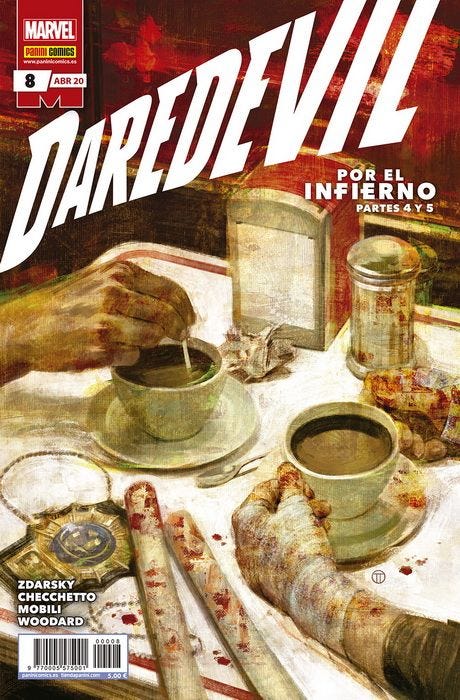 Pero no es sólo un tema del dibujo, hay varios elementos de la historia de Zdarsky con la que no he conectado nada. Partiendo que la propia premisa no inventa nada y se dedica a reciclar y/o actualizar temas que ya hemos visto en etapas anteriores del Hombre sin Miedo. Desde la caída en desgracia de Matt Murdock y el abandono (temporal) de su identidad de Daredevil, los problemas de Kingpin ante otros poderes que buscan sustituirle o ver a Matt en prisión, todos estos elementos tienen una tremenda familiaridad a otras lecturas previas y sin embargo su lectura no me deja sensación que estos arcos sean mejores que lo anterior.