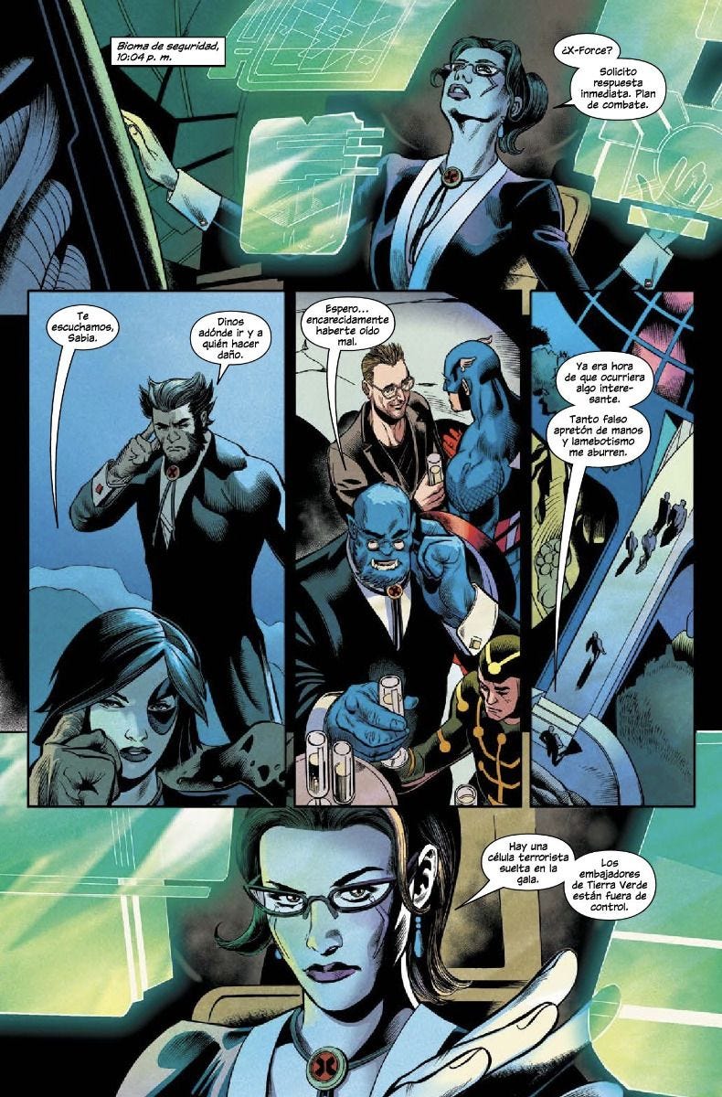 Un título perteneciente a «Gala Fuego Infernal». En la Tierra, los mutantes asisten a la Gala Fuego Infernal, pero en la estación espacial de SWORD se ha reunido un puñado de invitados muy diferentes. Mientras, Abigail Brand desvela sus planes de futuro para humanos y mutantes.