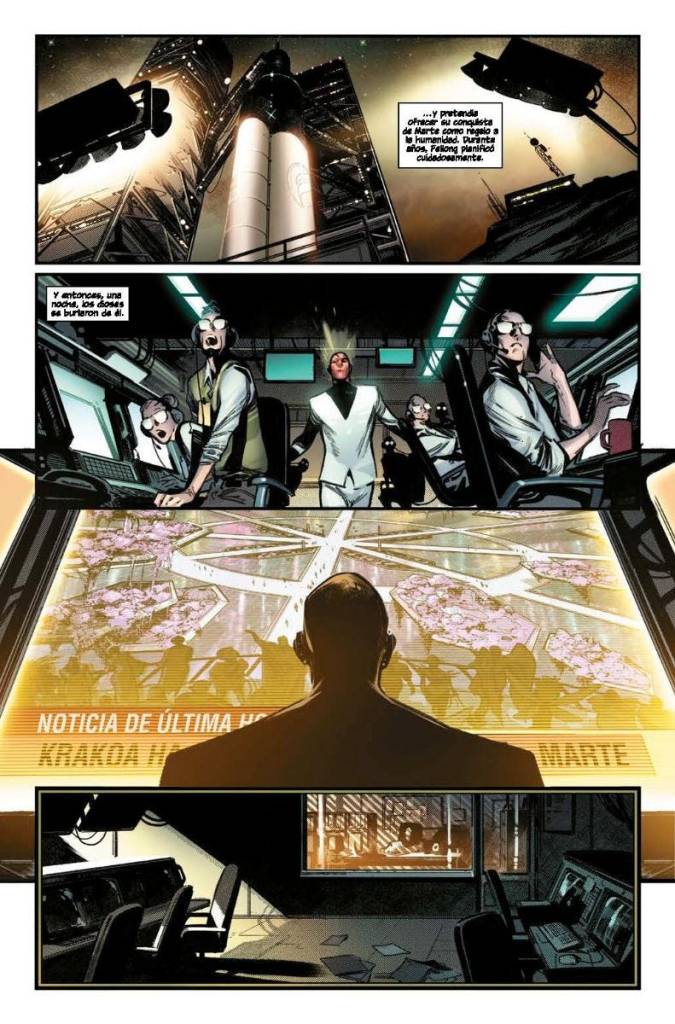 La verdad es que tener a Pepe Larraz y Marte Gracia es una gozada. Sus páginas son alucinantes, podría releerlas todo el día y con cada lectura apreciaría un nuevo detalle del dibujo de Larraz, con un color de Gracia que da el tono perfecto a cada escena y acrecienta la sensación de aventura más-grande-que-la-vida. Da gusto leer un comic dibujado por un equipo creativo tan bien compenetrado que nos maravilla con páginas como la presentación de la nueva vivienda de los mutantes en Nueva York, que son alucinantes.