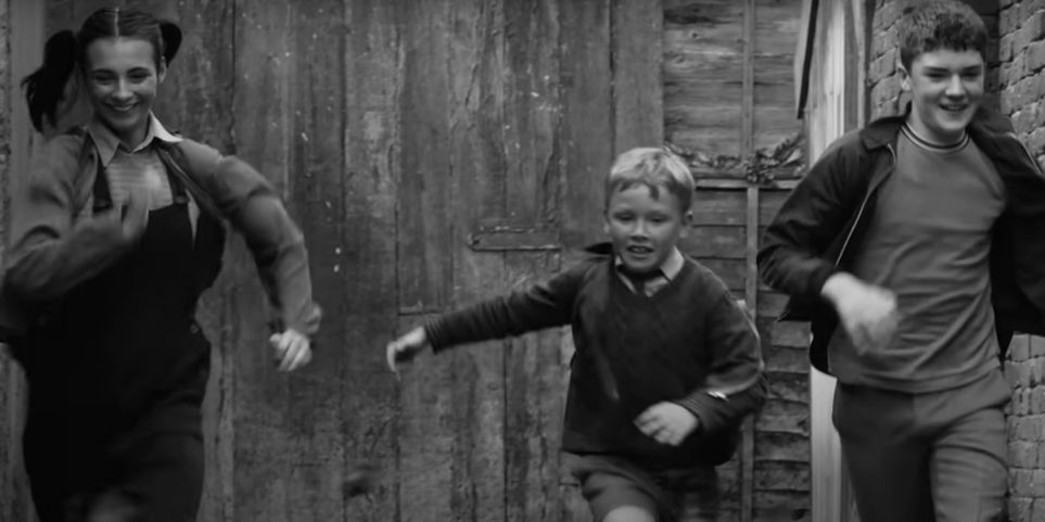 El blanco y negro ayuda a dar el feeling retro de historia antigua que entiendo que Branagh quería transmitir en Belfast, aunque la realidad es que no hace tanto tiempo de estos disturbios, apenas 50 años. El diseño de producción y la fotografía son espectaculares y nos regala planazos increíbles casi en cada escena. En especial quiero destacar los primeros 5 minutos de película que me parecen brillantísimos y de largo lo mejor de la película.