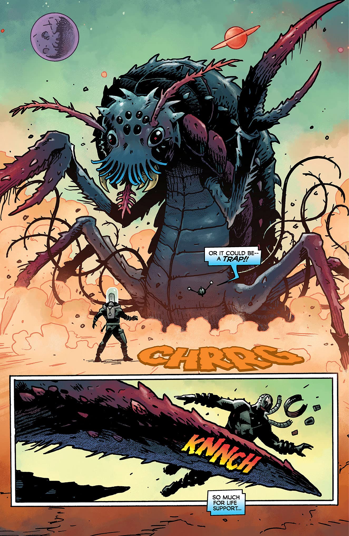 El dibujo de Wagner me parece maravilloso como siempre. Su estilo de línea fina es espectacular, y muestra una imaginación desbordante en los diferentes mundos alienígenas que no tienen nada que ver con la sociedad humana. Junto a ello, su narrativa me encanta, en especial la forma en que hace avanzar la historia a través de sus viñetas y sus páginas. El color de Brennan Wagner aporta un elemento super colorido que le va perfecto a la historia.