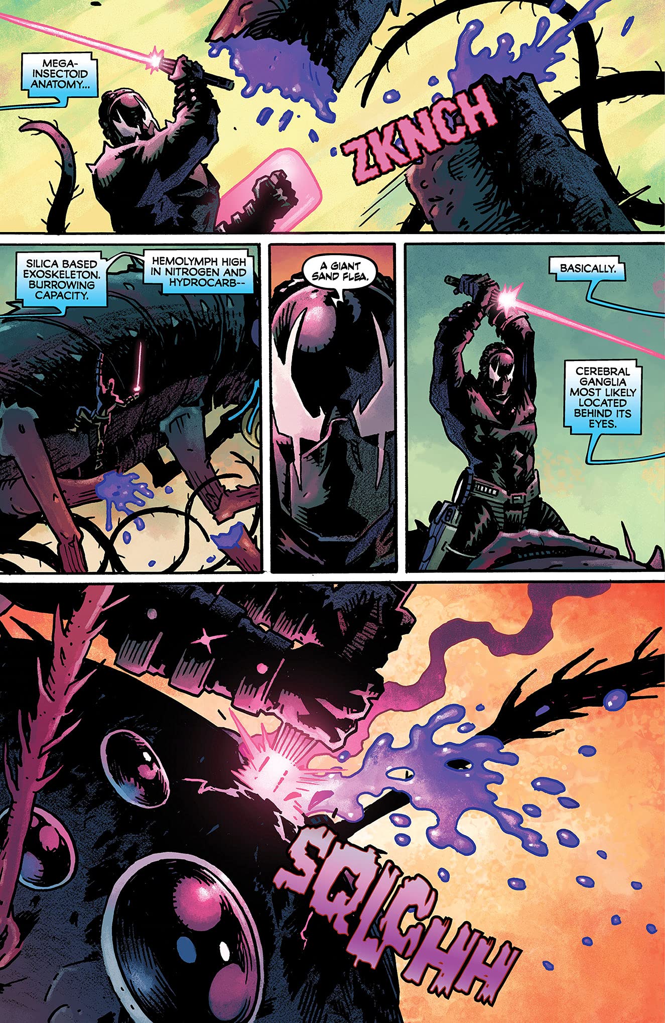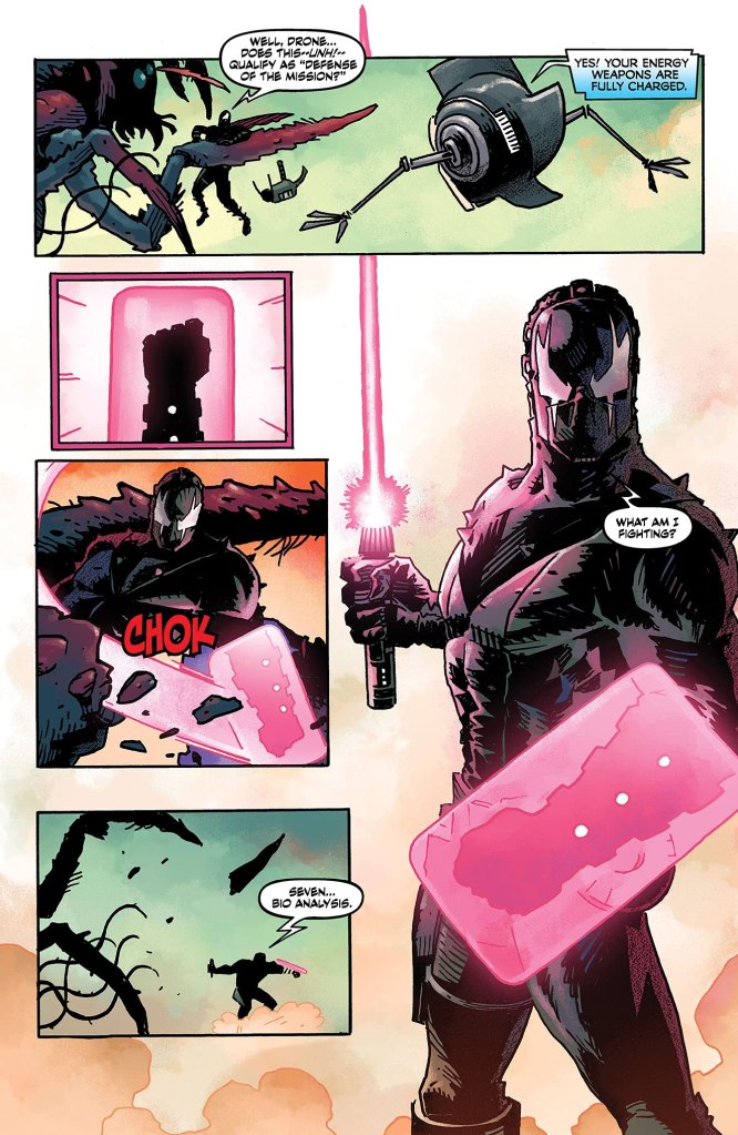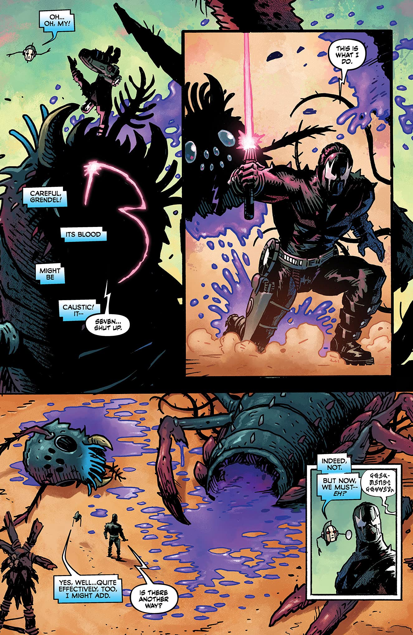 Aunque estamos ante una miniserie de ocho números, Wagner plantea su historia en tres arcos de dos episodios cada uno, con un cliffhanger a mitad de cada aventura, y dos comics autoconclusivos, mientras vemos las aventuras que Prime vive en cada uno de los planetas a los que llega para explorarlos. Y es curioso, porque a pesar de las palabras de Wagner, este comic repite en parte la estructura de War Child en la que cada número sucedía en una localización diferente mientras Grendel Prime escapaba de las fuerzas del Grendel-Khan para salvar al niño Júpiter Niklos Assante, teniendo que enfrentarse a las diferentes facciones y seres que pueblan este mundo desolado post-apocalíptico. Esto mismo lo tenemos en Devil´s Odissey, con la diferencia que el protagonista viaja por mundos alienígenas.