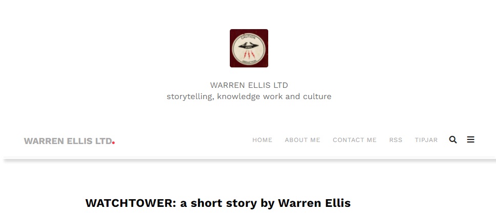 «El domingo 10 de abril de 2022, publiqué un relato corto de 10.000 palabras, WATCHTOWER, este es el enlace. Y si te gusta y te sobra una moneda, aquí tienes mi bote.