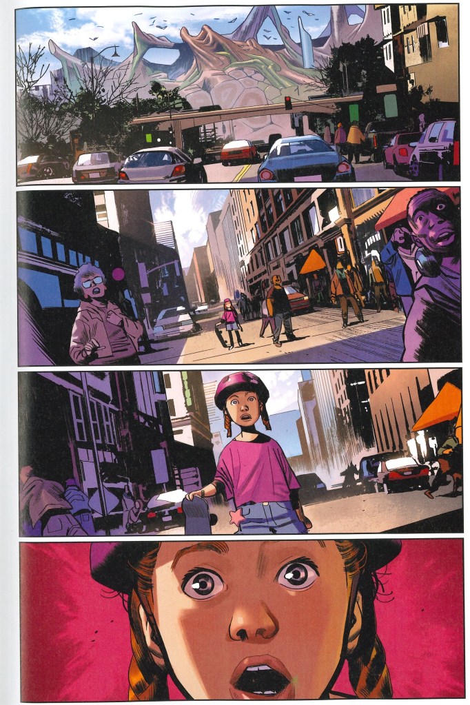 Me ha gustado mucho el dibujo de Lorenzo de Felici y colores de Annalisa Leoni en este comic. Empezando porque da gusto leer una serie de 36 números en las que el 100% del comic ha estado dibujado por el mismo equipo creativo, transmitiendo una integridad artística perfecta. Pero aparte de esto, la capacidad de crear mundos y seres super distintos al nuestro ha sido otro de los hitos de Oblivion Song, porque el aspecto visual y los diseños de personajes me han flipado de forma increíble. Si a eso tenemos a un perfecto narrador que consigue contar esta aventura de la forma más emocionante y espectacular posible, porque la sensación de escala en el comienzo del comic con el inicio del asalto de los Kuthaal a la Tierra me parece super épico al nivel de un ESDLA o un Vengadores Endgame, no hay duda que tenemos una combinación ganadora.