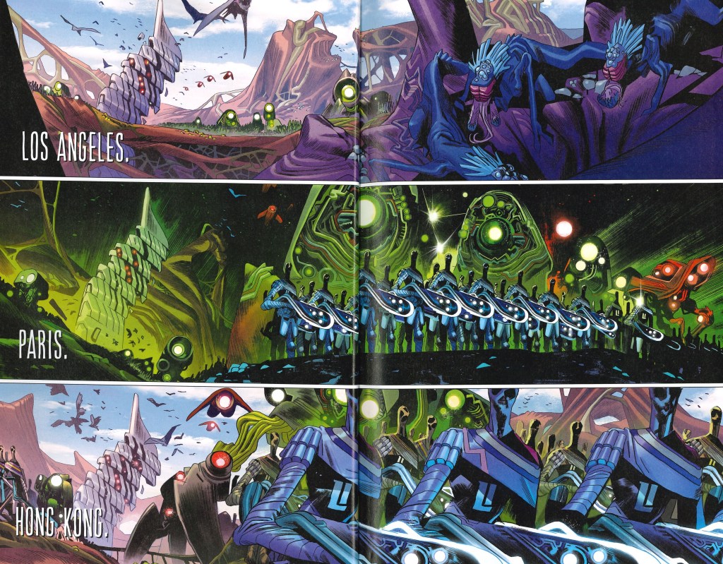 La narrativa de Kirkman hace que todo se sienta importante porque lo es para la trama, no hay fill-ins ni nada que se le parezca. Y en este climax en el que asistimos a la guerra total de la raza humana contra los invasores Kuthaal, además de la espectacularidad Kirkman guarda tiempo para momentos emocionantes relacionados con los hermanos Cole protagonistas que me pusieron el corazón en un puño. Como siempre en los tomos de Skybound, los comics vienen sin separar las diferentes grapas, y reconozco que el no tener todas las portadas es el detalle menos bueno de esta edición. Pero dicho esto, hay que flipar con la sensación que ofrece Kirkman de que todo es una única historia como si fuera una novela o película en la que no hay cortes hasta que terminas. Unido a que cuando ves donde estaban los finales de cada grapa aprecias la habilidad de Kirkman para crear cliffhangers bestiales que están perfectamente integrados en la historia.