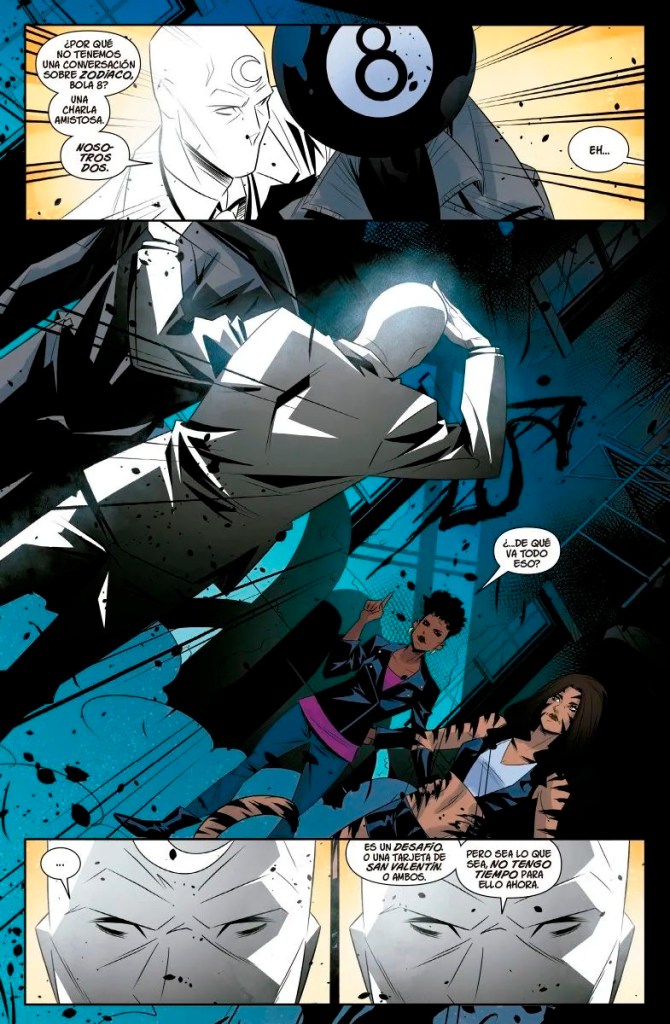 El primer volumen del relanzamiento de Caballero Luna fue una sorpresa total, y con este segundo se confirma que no estamos ante la promesa de un buen comic, sino que estamos ante una etapa del personaje que puede quedar super maja, con un Jed MacKay que ha entendido desde el primer momento las cosas más interesantes del personaje con las que merecía la pena jugar. Es curioso porque MacKay plantea este segundo volumen con una estructura igual que la primera, creando historias autoconclusivas en las primeras grapas que resultas super satisfactorias, y que van construyendo la amenaza del nuevo villano Zodiaco, estallando todo en las dos últimas grapas que forman un arco a modo de climax del volumen.