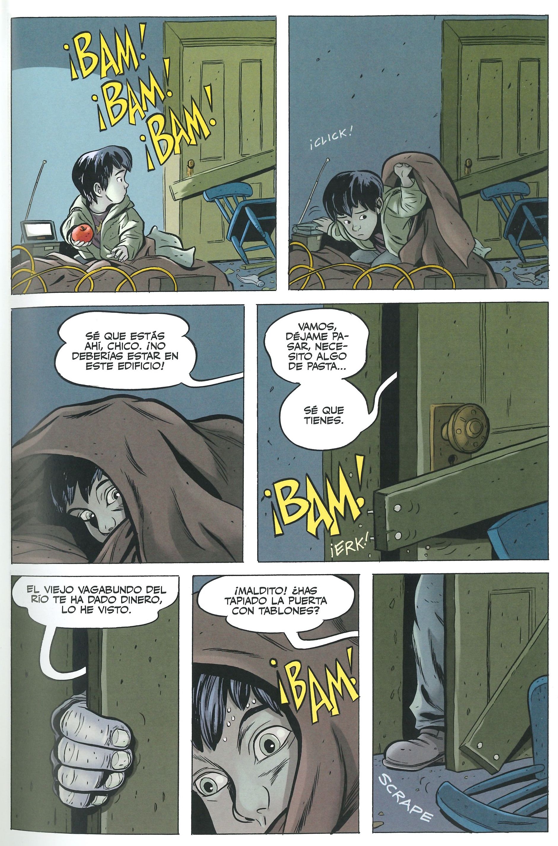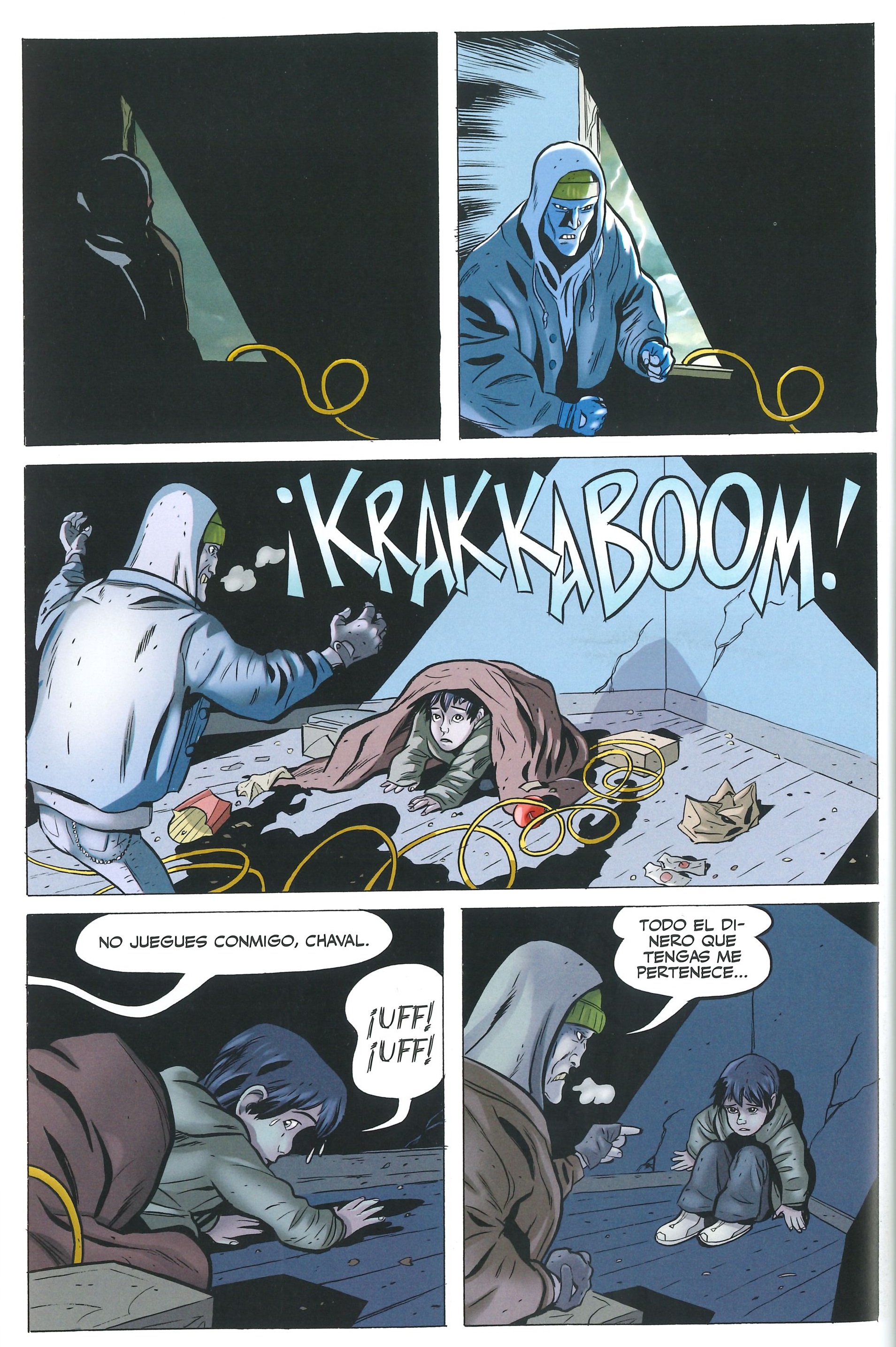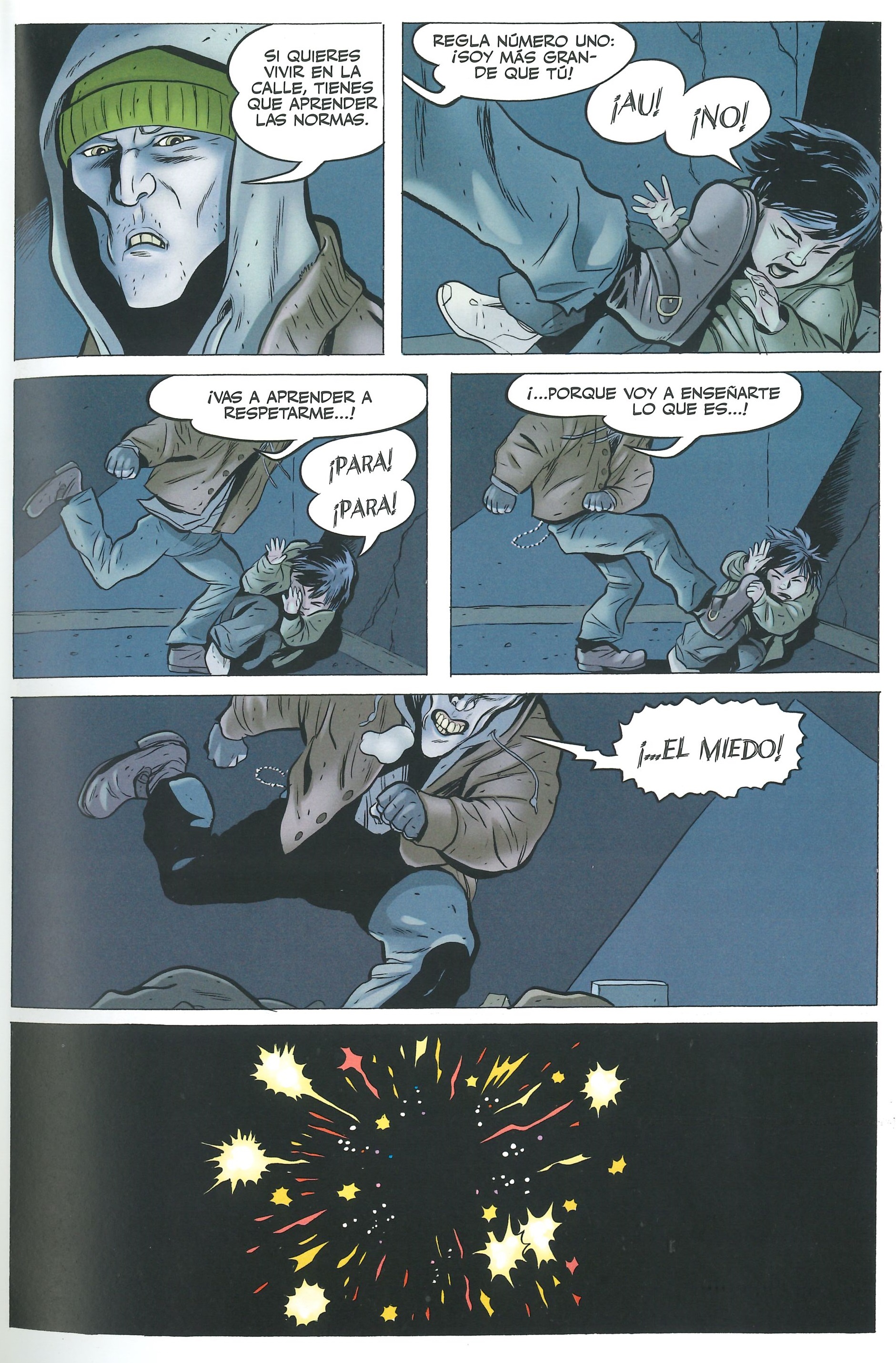 Y es que otra de las grandes virtudes de este comic es la caracterización Billy y Mary, que son mostrados como niños de verdad. Realmente transmiten la edad de tener menos de 10 años, unos niños a los que aún les falta mucho para alcanzar la pubertad. Las expresiones faciales son una delicia, pero casi mejor es todo lo relativo a la expresión corporal y la comunicación no verbal. Escenas como cuando Billy conoce al mago, el primer vuelo de Mary en el que acaba estrellándose contra el suelo al no saber frenar, acabando con el pelo delante del rostro, o la escena del muelle en el que Mary se mete dentro de la capucha de su chaqueta transmitiendo toda la tristeza que lleva dentro al ser una huérfana son momentos muy potentes que me llegaron.