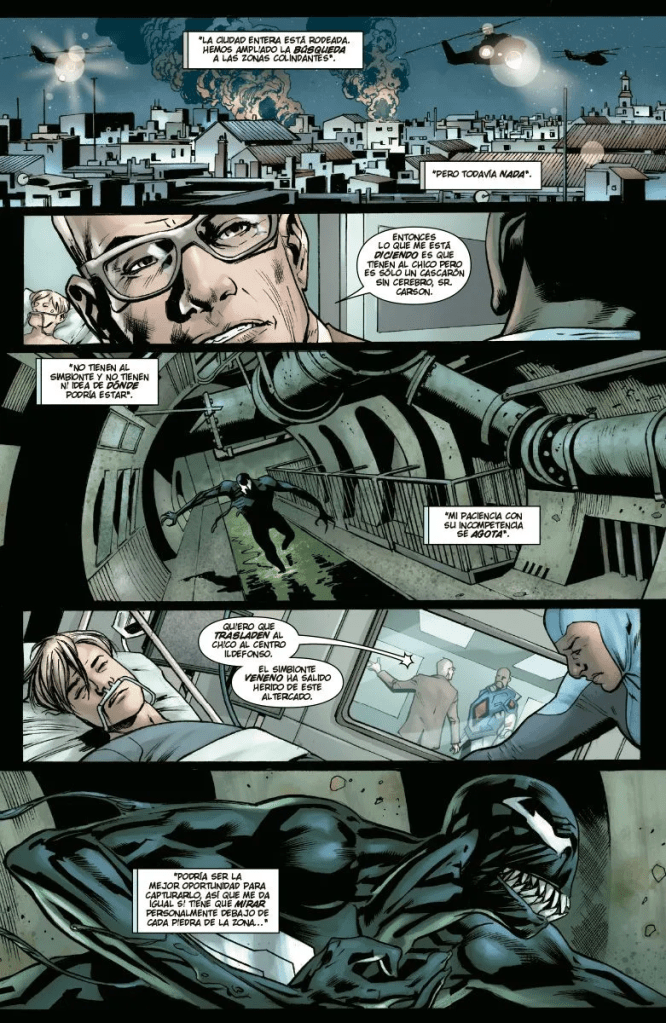 El comienzo de «Demonización». Tras las explosivas revelaciones del número anterior, arranca el aterrador tercer arco argumental de nuestra etapa con Dylan Brock a merced de Locura. Pero ¿Dónde está el padre de Dylan, el Veneno original? ¿Dónde está Eddie Brock?