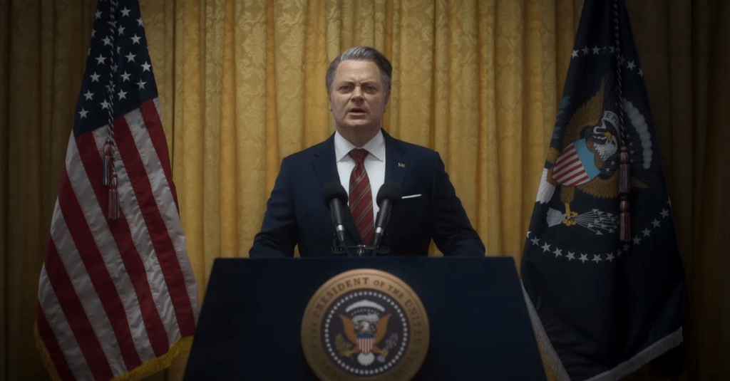 En ciertos momentos estas escenas recuerdan el cine de zombies, al mostrar lo peor de la raza humana cuando hay escasez de recursos. Sin embargo, como digo, la mayoría de escenas no tienen un elemento político al ser hechos de personas individuales no se sabe con qué ideología. Por ejemplo, en la escena inicial del atentado en Nueva York, en la gasolinera en la que vemos cómo tratan a los ladrones o durante la tensa escena del francotirador en una casa cercana a la carretera. Todas son escenas super tensas que te ponen el corazón en un puño, pero en realidad son momentos sin demasiado sentido más allá de que la violencia engendra violencia. La tremenda escena protagonizada por Jesse Plemons es la única que puede decirse que se trata claramente de una persona de ideas cercanas a la Asociación Nacional del Rifle o los Republicanos. Pero como comentaba me gusta que esto no sea una situación de señalar a uno de los dos principales partidos políticos de los Estados Unidos.