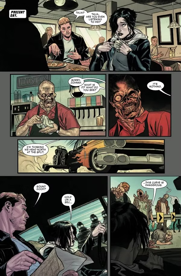 Nuevo número de Motorista Fantasma de Benjamin Percy que nos acerca al final de esta etapa, al empezar la historia de origen de Talia Warroad, la actual compañera de aventura de Johnny Blaze. Una grapa doble de Panini que cuenta con dibujo de Carlos Nieto y Brent Peeples con Cory Smith.