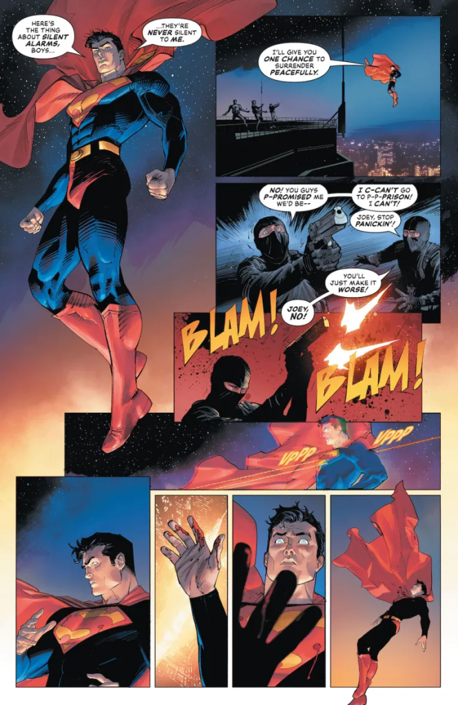 El plan de Amanda Waller es super comiquero e implica además de los nuevos villanos de Batman y Superman Failsafe y Queen Brainiac, el uso de una versión renovada de un villano clásico que por cierto vimos en uno de los arcos de Batman – Superman: World´s Finest. El nivel de amenaza no puede ser mayor, y este número nos deja a los héroes en su peor momento al sufrir un ataque devastador. Pero esta es la base del comic de superhéroes, el protagonista no puede levantarse si antes no cayó al suelo. Y en lo referido a los clichés del género, hay pocos escritores mejores que Waid a la hora de desarrollar una historia que nos enganchen de principio a fin. Otro elemento que me encanta de este comic es el uso que hace de las decenas de personajes en el arranque de este evento, algo que confirma la idea de EVENTO clave para el futuro del universo DC.