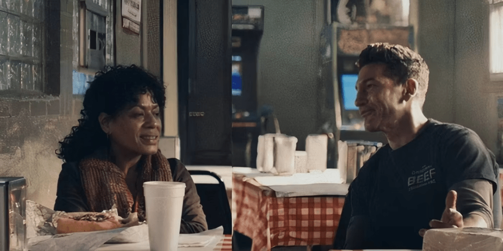 Dentro de esta opción de «NO-trama» de The Bear, es curioso que probablemente los mejores episodios de la temporada sean justo los que no hacen avanzar la trama, sino centrarse en personajes concretos de la serie. En concreto, el episodio 6 «Servilletas», en el que vemos la historia de Tina Marrero y como conoció The Bear y a su dueño Mikey Berzatto, me emocionó. Liza Colón-Zayas es una gran actriz que seguro ha vivido en sus carnes lo mismo que Tina, y su escena con Jon Bernthal es espectacular. Qué bueno es Bernthal y que episodio más increíble. El otro episodio super emocionante es el octavo «Cubitos de hielo», en el que Natalie tiene que llamar a su madre Donna para que la acompañe en el parto, al no poder contactar con nadie más. Este episodio, rodado casi totalmente en una sala de pre-parto con madre e hija abriendo sus corazones me impactó. Y whoa! qué buena es Jamie Lee Curtis y cómo aprovecha un personaje tan complejo como Donna para hacer una interpretación super emocionante. Está claro que los problemas de una vida no se arreglan con una conversación, pero que este pueda ser el primero de muchos pasos me parece uno de los grandes momentos televisivos de 2024.