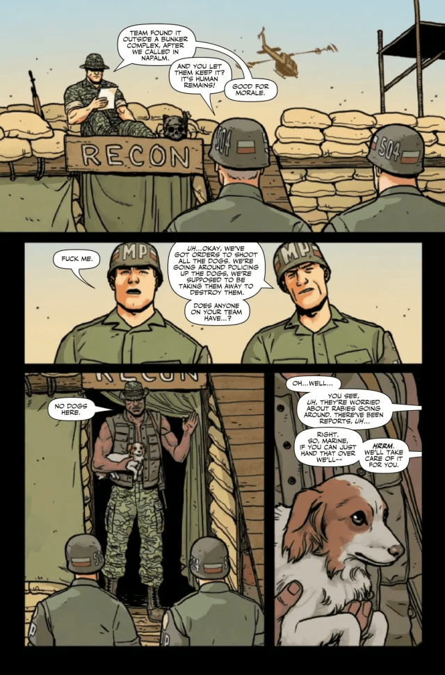Y vuelvo a Get Fury y la incomprensible decisión de Marvel de quitar a Frank Castle / Punisher del título de la colección. Por lo visto en los dos episodios publicados hasta ahora, Castle es incluso más protagonista que el cautivo Furia, mientras se dirige a liberarle si puede, o asesinarle si no lo consigue, para que no revele los secretos de la CIA que conoce. Incomprensible también desde el momento que esta colección seguro se vendería mucho más a poco que hubieran publicitado el team-up escrito por el mítico Garth Ennis. Sin embargo, la sensación es que Marvel lo publica porque no tiene más remedio, pero parece que cuanta menos gente se entere de su existencia, mejor. Si Get Fury no se vende no tendrán que justificar que no publiquen nuevas miniseries de estos personajes, tendrán la explicación en las bajas ventas. Igual que la idea de contratar a Garth Ennis, eso de querer escribir comics de guerra donde se ha visto…