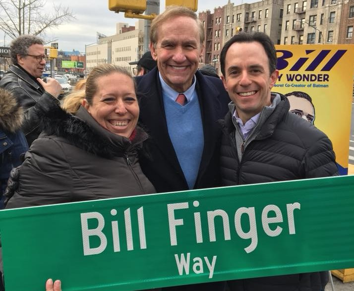Cuando DC Comics finalmente le dio a Bill Finger su primer crédito formal en octubre de 2015 en Batman and Robin Eternal 3 y Batman: Arkham Night Genesis 3: «Batman creado por Bob Kane con Bill Finger», quedó claro que se estaba reparando una injusticia con la figura de Finger, que llevaba más de 50 años fallecido. Y este comic me parece que cumple de maravilla dos objetivos fundamentales. Por supuesto, celebrar al Bill Finger escritor, uno de los mejores autores de su generación que no obtuvo el reconocimiento en vida que merecía y que murió en la pobreza en 1974. Y por otro, reconocer al otro héroe de esta historia, el periodista e investigador Marc Tyler Nobleman que consiguió llamar la atención sobre la injusticia que se había cometido contra Finger, encontrando a su nieta Athena y ayudándola a que reclamara ante DC Comics.