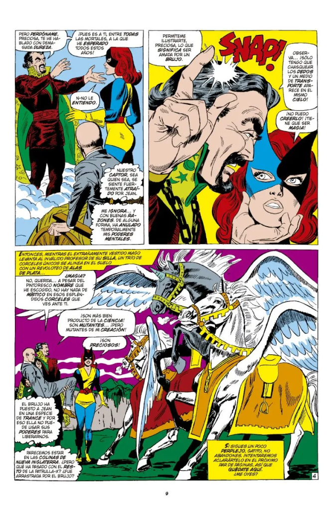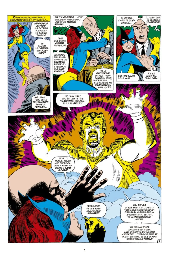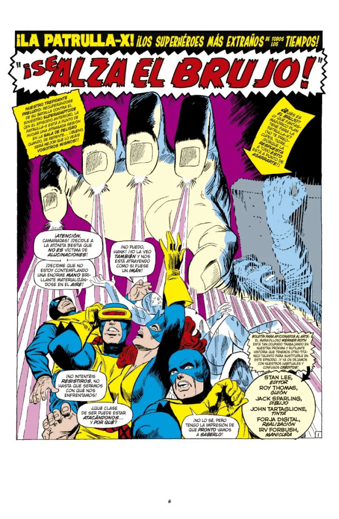 Roy Thomas parece que está haciendo suya la colección muy poco a poco, pero tiene que seguir empleando situaciones ridículas a ojos de hoy en día, para poder contar historias autoconclusivas, como que un Brujo que no les conoce de nada les rapte de la mansión al comienzo del número 30. Thomas era un buen aprendiz de Stan Lee en Marvel y tenía claro cómo emplear a villanos ya presentados en otras colecciones, alternándolos con personajes de nueva creación. Sin embargo, en estas historias tenemos a villanos tan poco atractivos como el Brujo o el Hombre de Cobalto, aparte de la lamentaba amenaza en la sombra que forma la organización Factor 3.