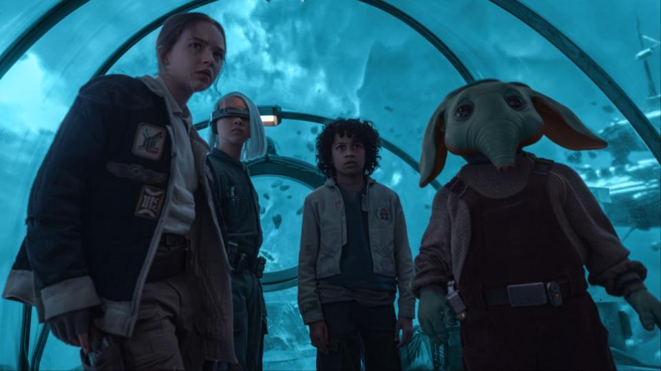 Los efectos especiales de Tripulación perdida me han gustado mucho. Viendo los títulos de crédito descubrí que han rodado la serie con el Domo LED Digital creado en The Mandalorian. Y la verdad es que durante el visionado no vi nunca el punto de salto entre el atrezzo y el fondo digital. Porque creo que está super bien planteado. Las naves y razas alienígenas son puro Star Wars, como también lo es tener a un robot SM-33, primer oficial de la nave, cuyas células de memoria se han frito por el paso del tiempo. Los momentos de acción son pocos, pero están rodados de forma modélica, y parece claro que lo mejor está aún por llegar.