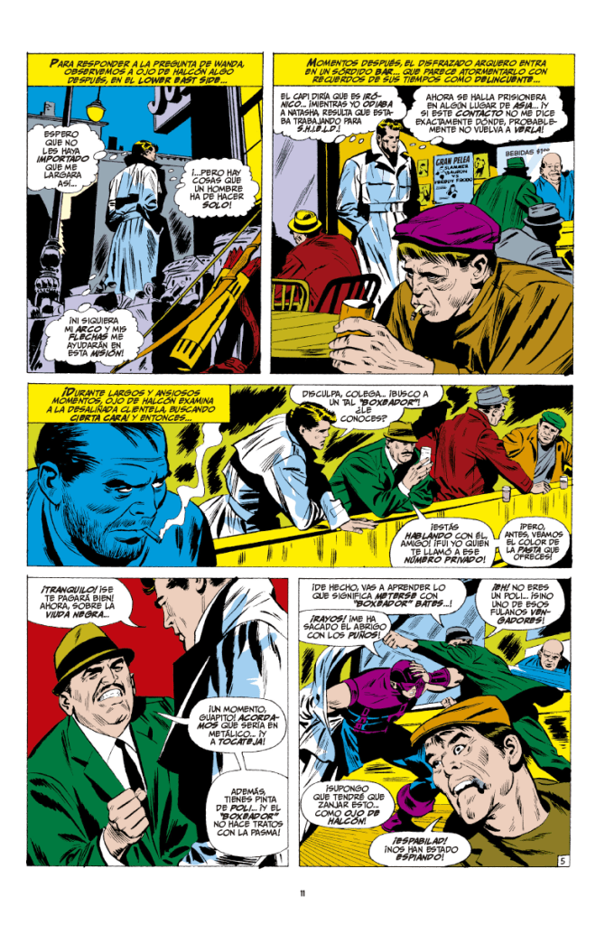 En el apartado artístico, una de cal y otra de arena. Los digo porque John Buscema es un fuera de serie y dibuja este arco de dos números. Y su calidad es muchísimo mayor que la del soso Don Heck, al que veremos a continuación. Sus figuras son más dinámicas y tienen muchísima más fuerza en estas páginas. Por decir algo menos buenos, me gusta el entintado de George Roussos en el número 43, pero en el 44 el entintado de Vince Colletta me parece super inadecuado y desluce completamente a los lápices de Buscema. Pensando que Buscema va a ser el artista oficial de la colección, creo que mientras no lo entinte Colletta voy a disfrutar de unas grapas que leo por primera vez gracias a esta edición.