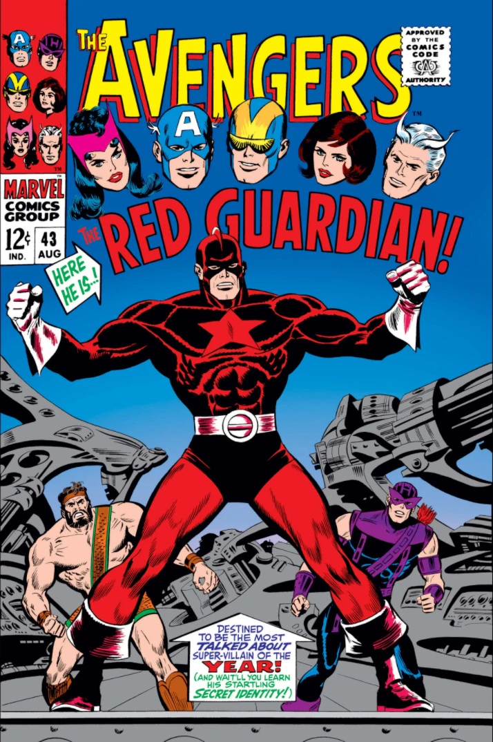 Entrando a valorar las cuatro grapas contenidas en este volumen, los números 43 y 44 USA son una aventura en dos partes en las que Ojo de Halcón y Hércules viajan a territorio comunista para intentar rescatar a la Viuda Negra. Tras conocer al Guardián Rojo, el marido de Natasha que ella creía que había muerto, son derrotados, lo que provoca que el resto de Vengadores viajen para rescatarles a todos, o morir en el intento. Este combate será el protagonista del número 44, que entre hechos destacados tenemos un estupendo combate entre el Capitán América y el Guardián Rojo.