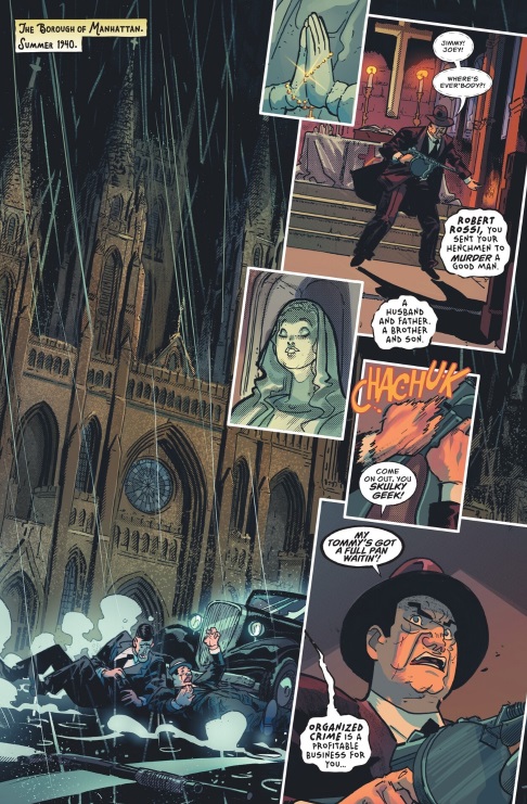 Como siempre, Venditti ofrece un guion eficaz que funciona como historia noir con contenido, pero también como aventura super heroica. Wesley es el gran protagonista, aunque también guarda un momento clave en la historia para Dian Belmont. Además, Venditti plantea conexiones a la continuidad del personaje al presentar a Sandy, el sobrino de Dian, y a la JSA. Tras ver el final de este comic, no me importaría que DC ofreciera a este equipo creativo hacer una continuación de la JSA ambientada en el mismo periodo temporal.