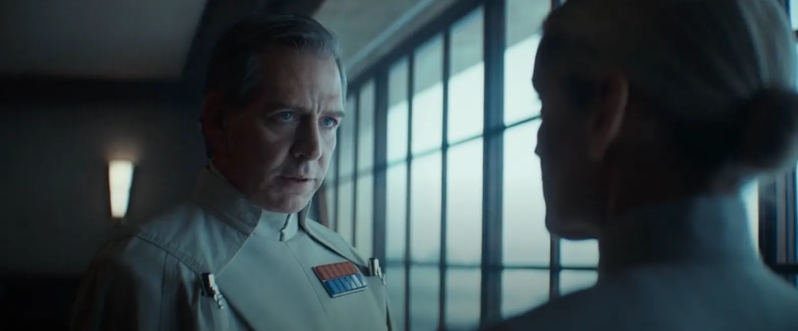 Pero estas partes no son las realmente malas. Lo realmente penoso viene de las tramas de los imperiales, y sobre todo de una Mon Mothma absolutamente ridícula. Por el lado de los imperiales, el Director Krennic convoca un grupo de trabajo para decidir como cometer un genocidio en un planeta que tiene unos minerales raros que necesitan para la construcción de la Estrella de la Muerte. La escena le sirve a Gilroy para mostrar, aparte de lo malos que son los imperiales, cómo el Imperio se va a servir de fake-news para ocultar el genocidio. Y nos da una escena realmente ridícula de gente hablando para mostrarnos algo que ya sabemos, que el imperio es malo. No el Emperador y Vader, todos los integrantes de su organigrama. Todos hombres blancos, excepto la oficial de inteligencia Dedra Meero, a la que conocimos en la primera temporada. Una oficial que es la única mujer, pero también es blanca.