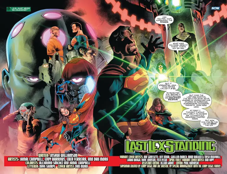 Superman y Superwoman siguen conmocionados por sus épicas batallas contra Doomsday y Time Trapper, pero acaba de aparecer un problema mayor… ¡Lex ha vuelto! La memoria de Lex fue borrada durante el arco House of Brainiac, pero ahora el mayor enemigo de Superman ha regresado con un giro, y está listo para una lucha por controlar Supercorp y Metrópolis. ¿Es este el fin de Supercorp? Prepárate para un impactante número de gran tamaño que celebra los dos últimos años de Superman, conecta con el Verano de Superman y pone en marcha una nueva historia.