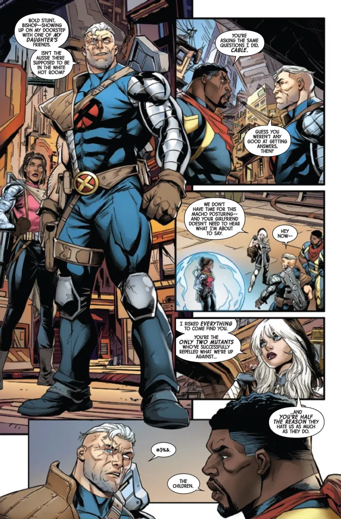 Lo mejor del comic es que ofrece una buena historia autoconclusiva y autocontenida en si misma. No es que sea un comicazo ni uno que recordaré toda la vida, pero está bien planteado y cuenta con un buen dibujo. En lo relativo a la historia, soy lo bastante veterano para recordar los maravillosos comics de Cable de los 90 en los que un enloquecido y radical Bishop intentaba matar a Cable y a Hope Summers. La historia del universo Marvel da muchas vueltas, y ya en Krakoa los dos viajeros temporales habían dejado atrás su enemistad. Eso no quita que Cable y Bihop no vayan a ser BFF en el futuro cercano. Aparte de la amenaza temporal, el comic tiene cierta gracia mientras vemos os pasados y futuros a los que viajan, ofreciendo un comic bastante redondo.
