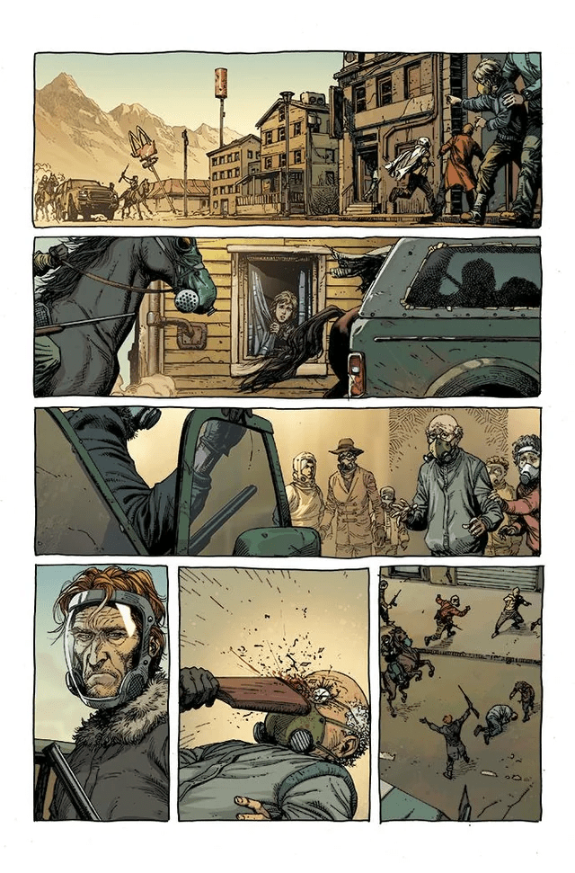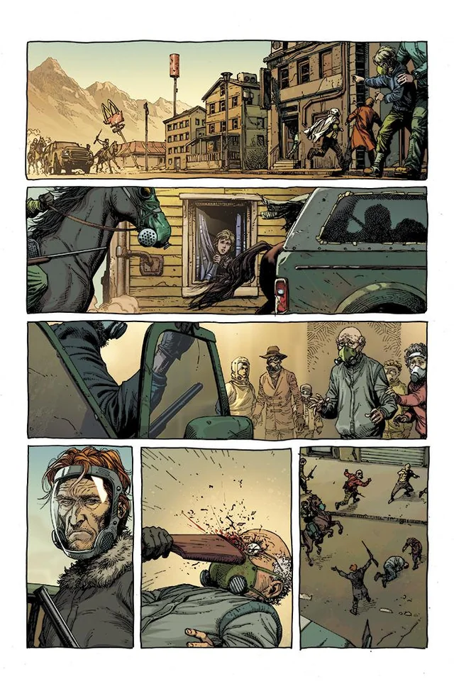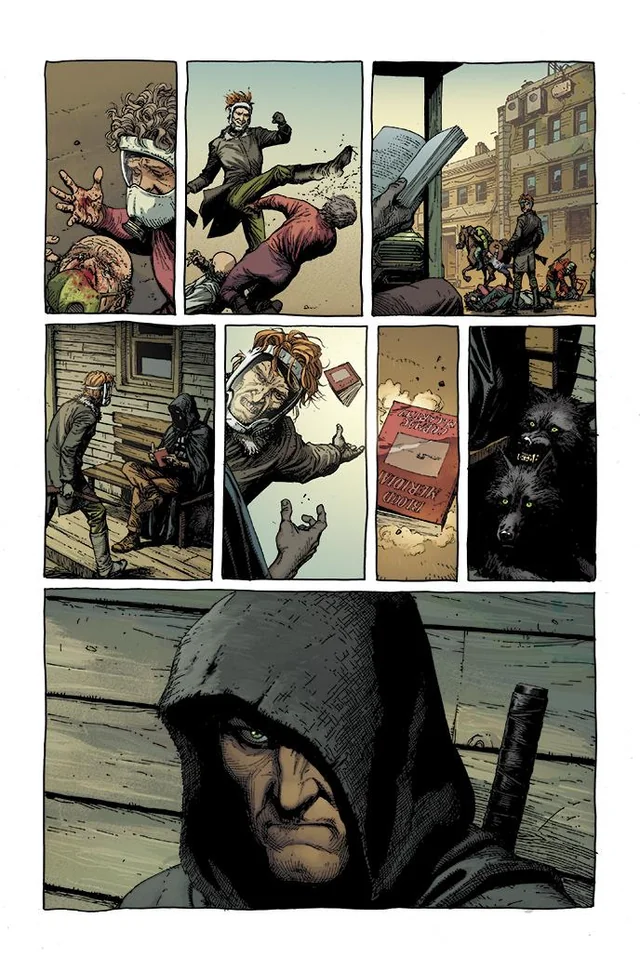 Johns se nota que es muy inteligente, porque una de las primeras decisiones que toma en este volumen es hace que Tariq tenga un compañero de viaje aparte del lobo con dos cabezas llamado Barry: Nate, un caballero de Las Vegas que vió a Geiger y su alma tuvo un vuelco al descubrir que era posible ayudar a la gente y no ser una persona egoista y asquerosa. Esto hace que la narración no sea un monólogo, pensando además que Tariq no es demasiado hablador tampoco. Con Nate, tenemos un narrador diferente que nos muestra el punto de vista de alguien que quiere ser mejor pero no acaba de saber cómo.