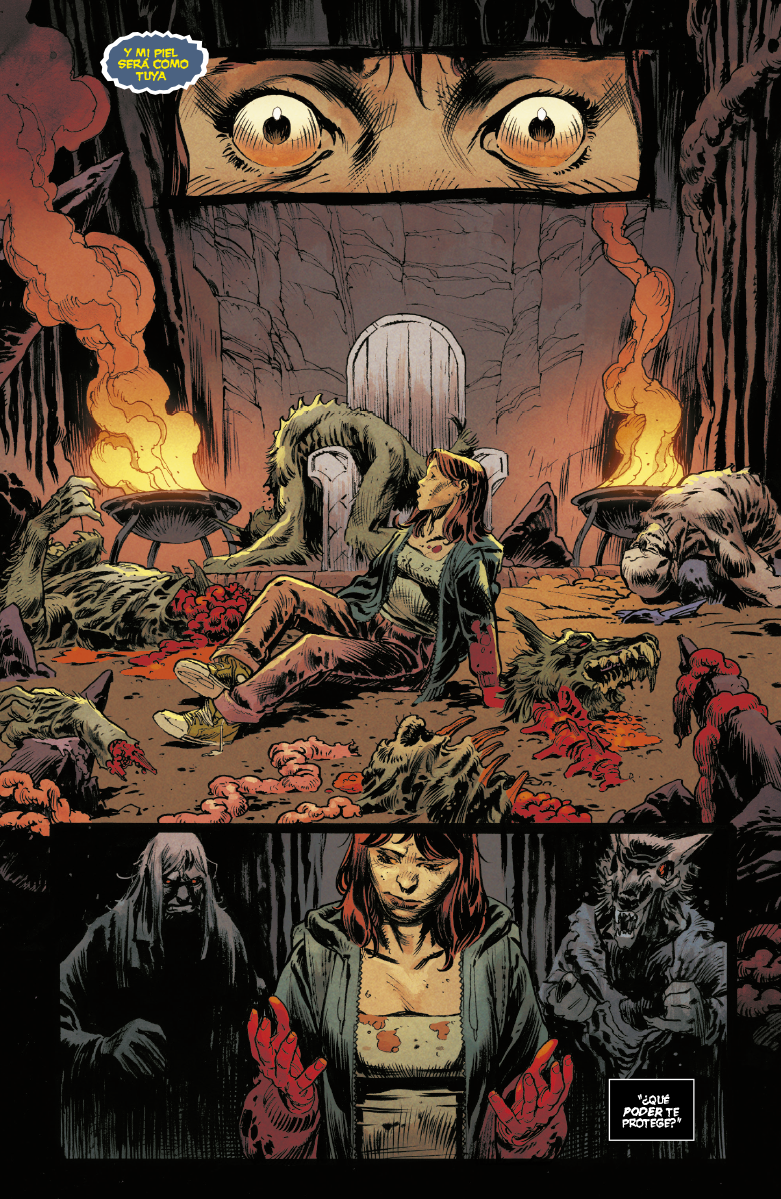 La evolución de la joven Charlie me parece un giro muy chulo. Tras meses intentando llegar a Las Vegas para liberar su alma de la prisión a la que la metió Charlotte Congelada, en Las Vegas recupera su vida y aspectos humanos. En el climax de este arco, Charlie usará la piel de una hija de la Primogénita, la multiforme Lycana, para ayudar a Hulk. Charlie en el fondo quiso ser una heroína para ayudar a Hulk, pero ¿seguro que usar la piel multiforme de un demonio multiforme es una buena idea? Todo lo relativo a Charlie me parece de las cosas más interesantes que siguen pasando en este comic.