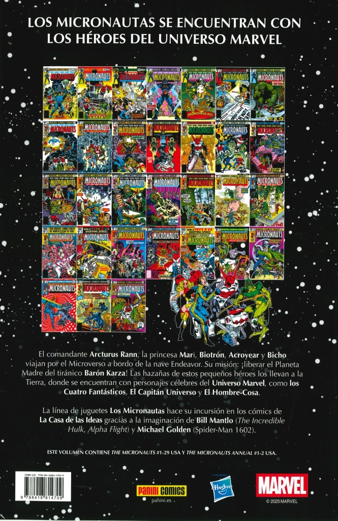 Desde el Microverso, llega el Omnibus que nunca creíste que llegara a existir. En 1979, Bill Mantlo y Michael Golden lanzaron una serie diferente a todas las demás, integrada en el Universo Marvel al tiempo que tenía lugar en un mundo lejano habitado por los más increíbles héroes y los más oscuros villanos: el Microverso. Los Micronautas recorren su hogar mientras luchan por liberarlo del tiránico Barón Karza. Sus hazañas también los conducirán a la Tierra, donde se encontrarán en el camino de Los 4 Fantásticos, SHIELD, el Capitán Universo y el Hombre-Cosa. ¡Esta edición ofrece una impresionante restauración, con las páginas de correo de lectores, publicidades de la época, arte original y mucho más! Por Bill Mantlo, Michael Golden, Howard Chaykin, Pat Broderick y Steve Ditko.