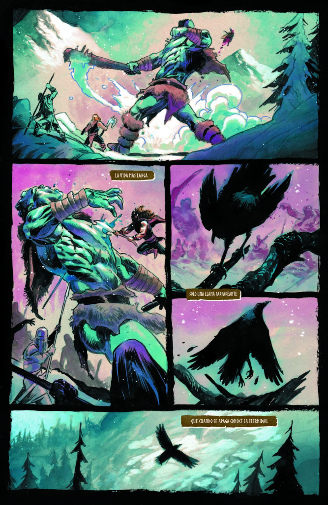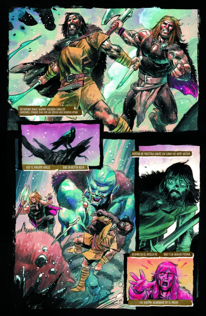 Tener a Nic Klein dibujando este comic es una pasada. Klein se colorea en las páginas situadas en el pasado de Thor, lo que ayuda a contrastar las páginas en el presente coloreadas por Matthew Wilson. El combate de Hulk y Thor es super brutal, aunque en este caso obviando el gore que ha acompañado a esta etapa desde el principio. Algo que le en realidad le sienta muy bien al combate. Tener a Klein nos da la escala de poder que se sale de la escala, y hace que de gusto disfrutar de este comic.