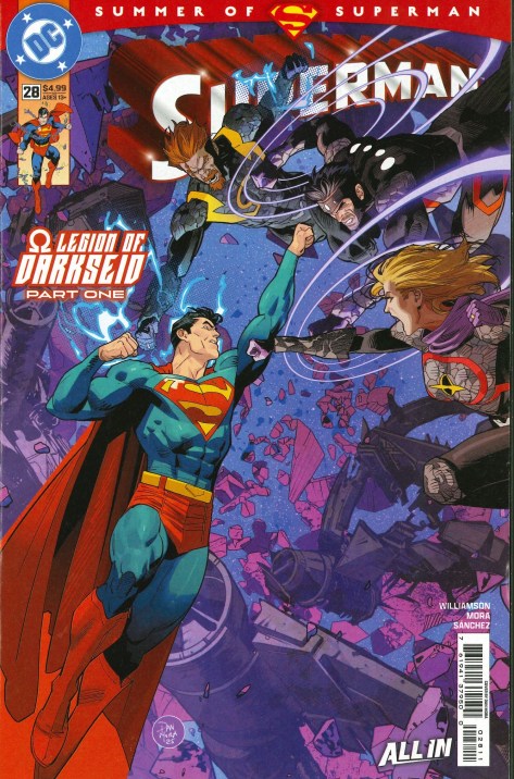 Llegamos a uno de los puntos fuertes del universo DC desde el reinicio DC All In, el enfrentamiento de Superman contra la Legión de Superhéroes malvada de Darkseid. Legion of Darkseid es un arco que se ha desarrollado en los números 28 a 30 de Superman, obra de Joshua Williamson, Dan Mora y Alejandro Sánchez.