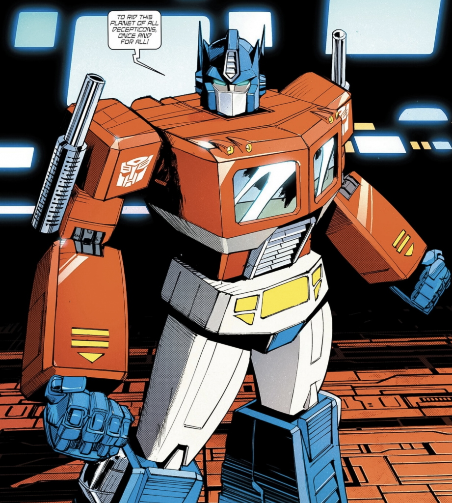 Otro momentazo es ver a Optimus por fin reparado y al 100% de potencia. Creo que fue en Transformers 2 o 3 de Daniel Warren Johnson cuando perdió el brazo, por lo que tras 2 años con diferentes problemas, me flipa ver a Dan Mora dibujarle en toda su gloria. Parece mentira que Mora consiga crear una de las imágenes más icónicas de Optimus que he visto en mucho tiempo. Es un artistazo, y lo demuestra en cada grapa.